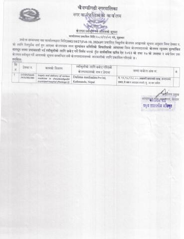 » बोलपत्र स्वीकृत्त गर्नेआशयको सूचना ।