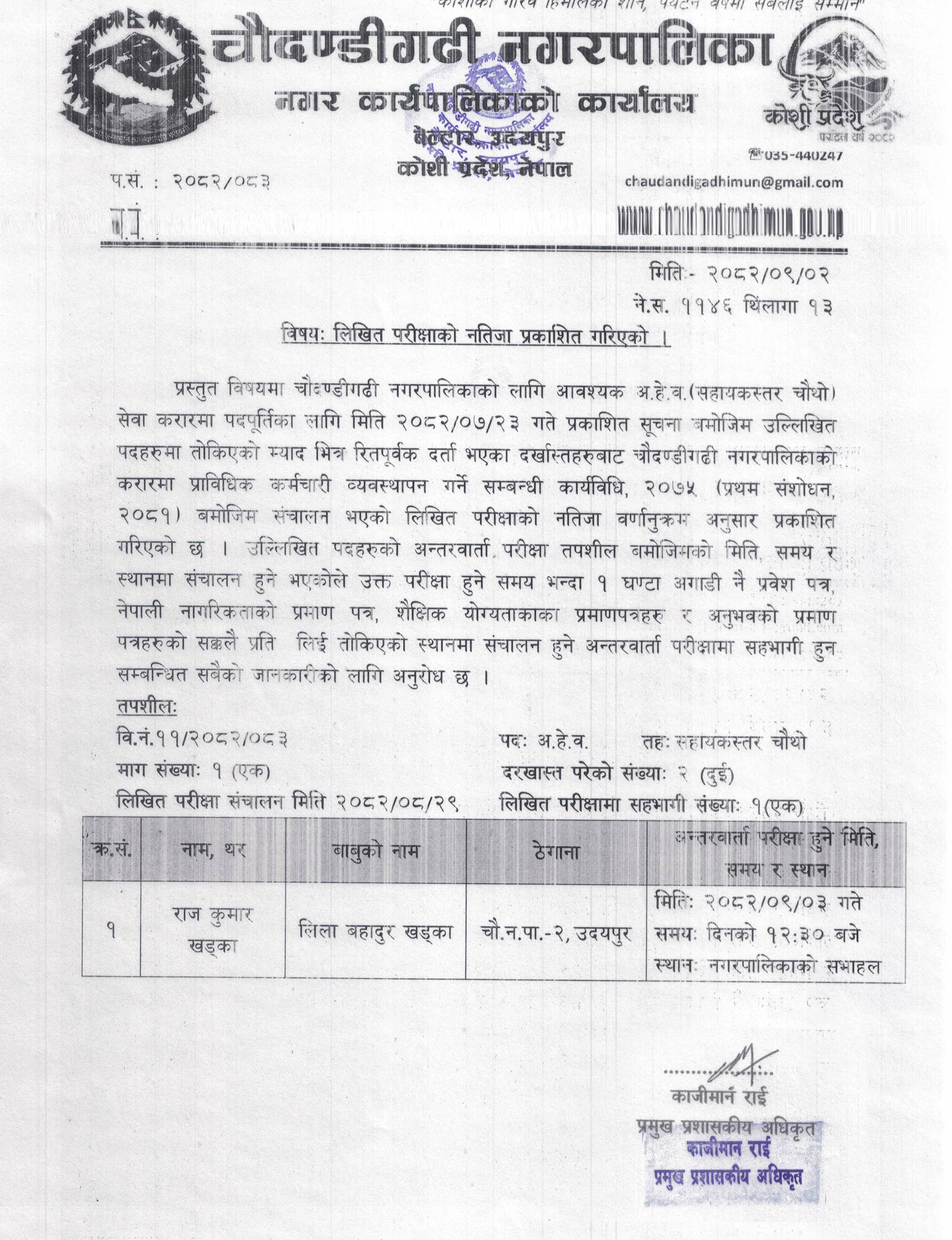 » लिखित परीक्षाको नतीजा प्रकाशित गरिएको ।