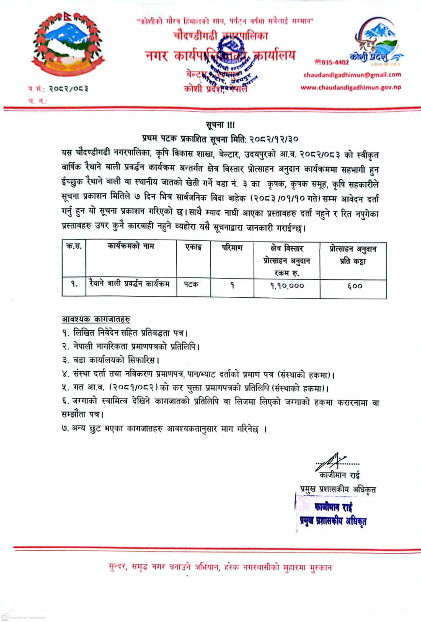 चौदण्डिगढी नगरपालिकाको नागरिक वडा पत्र २०८१/०८२