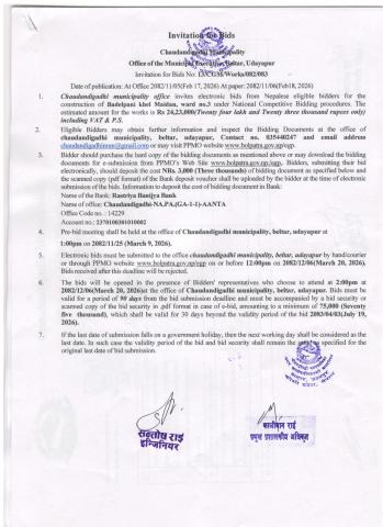 सार्वजनिक खरिद/बोलपत्र सूचना