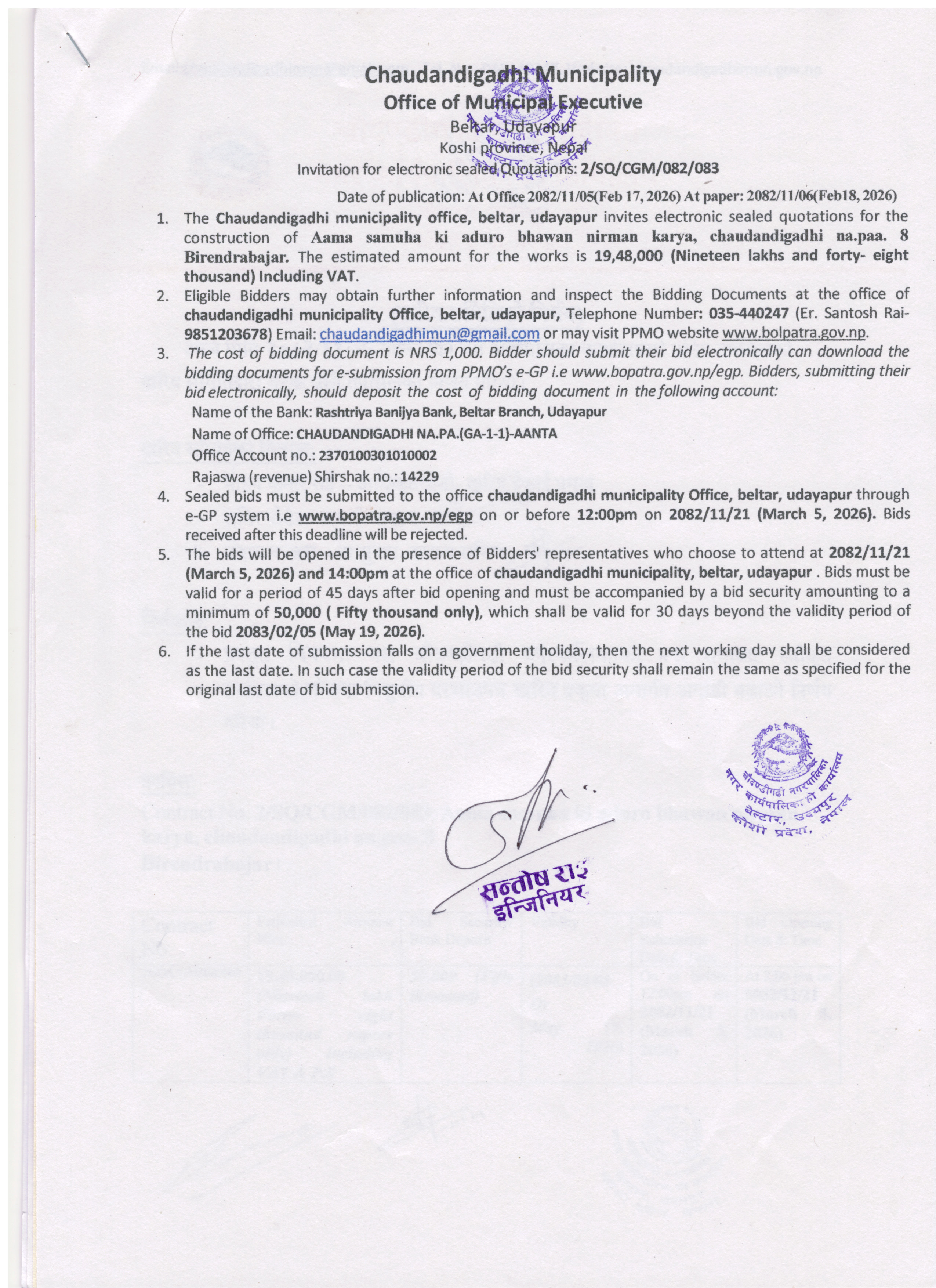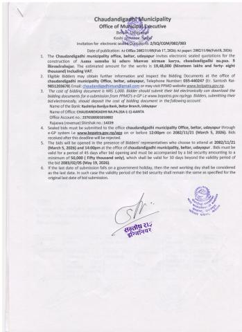 विद्युतीय बोलपत्र आव्हान सम्बन्धी सूचना ।