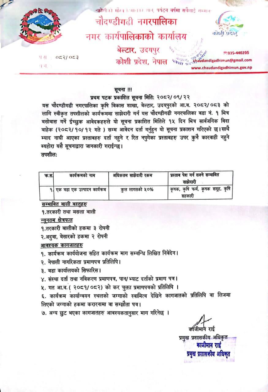 चौदण्डीगढी नगरपालिका वडा कार्यालयहरुको नागरिक वडापत्र