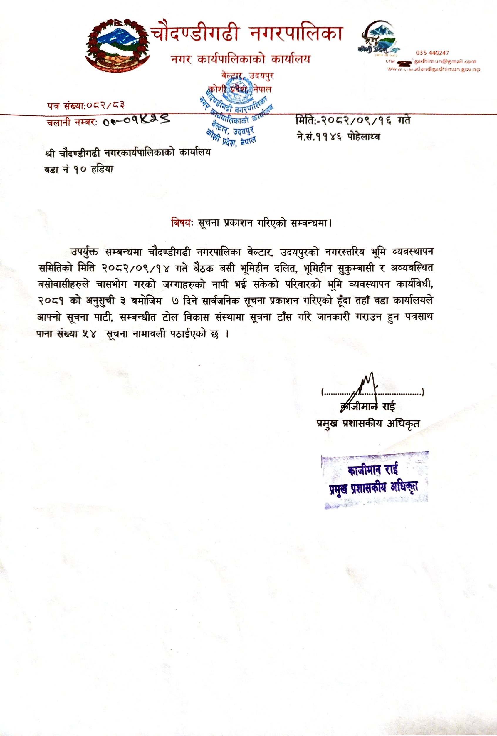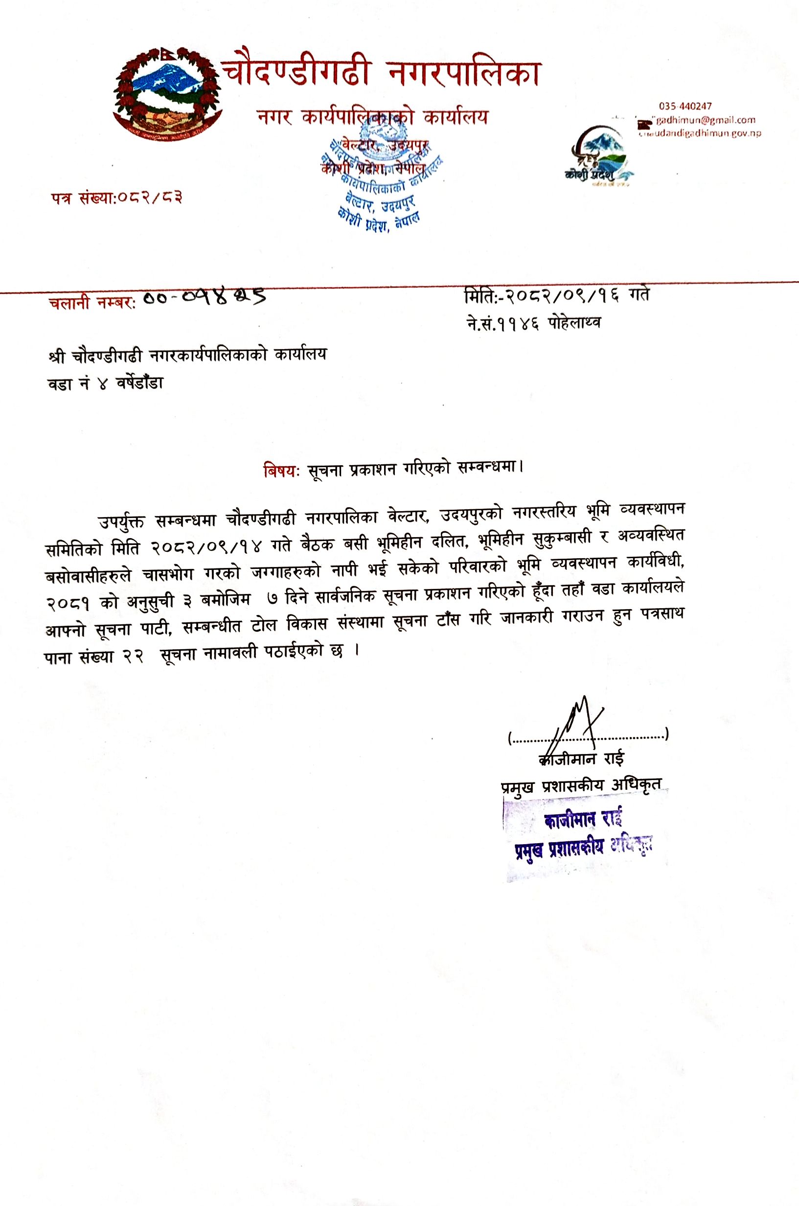 चौदण्डिगढी नगरपालिकाको नागरिक वडा पत्र २०८१/०८२