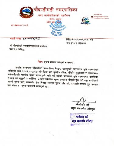 सूचना प्रकाशन गरिएको सम्बन्धमा।