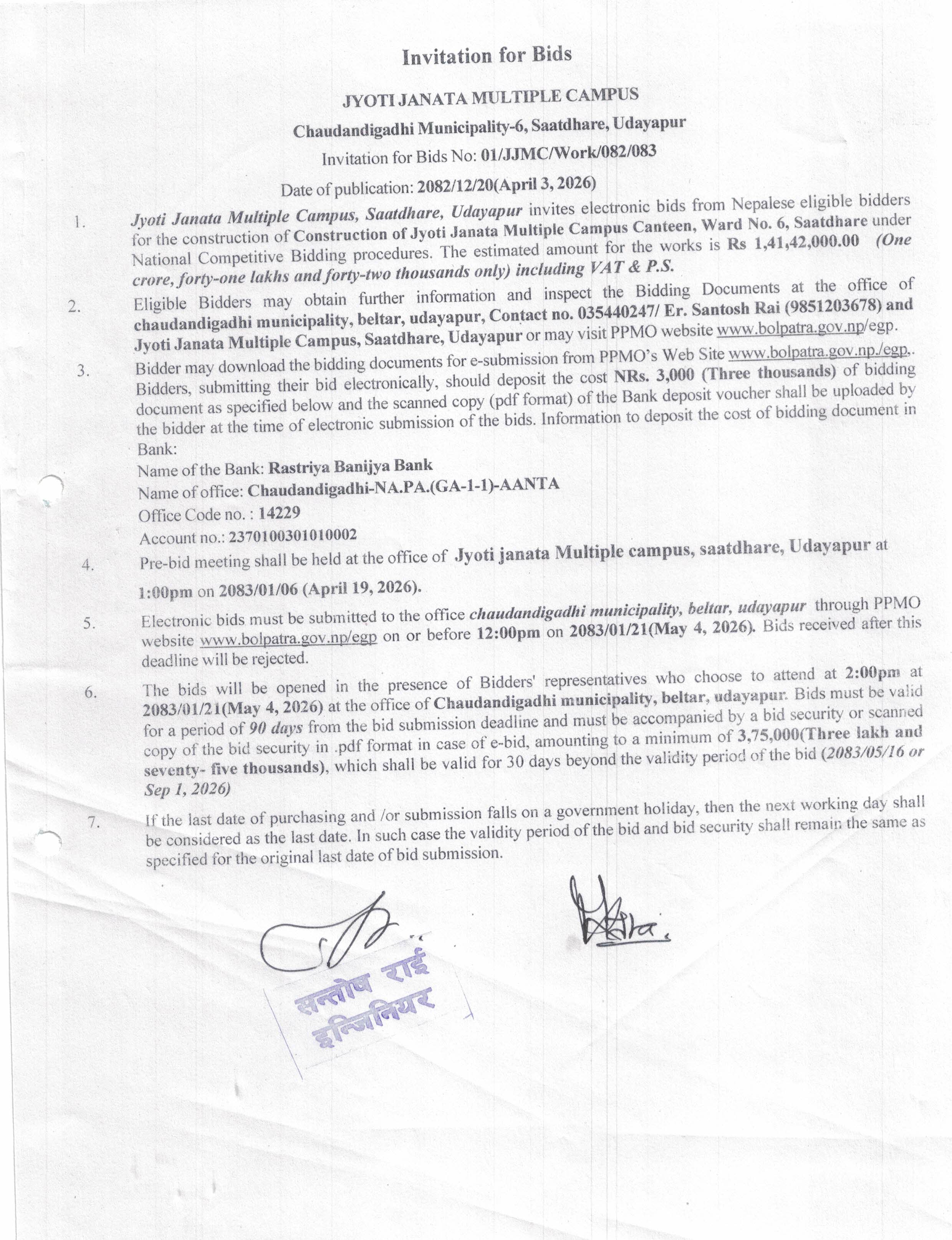 सार्वजनिक खरीद / बोलपत्र सूचना