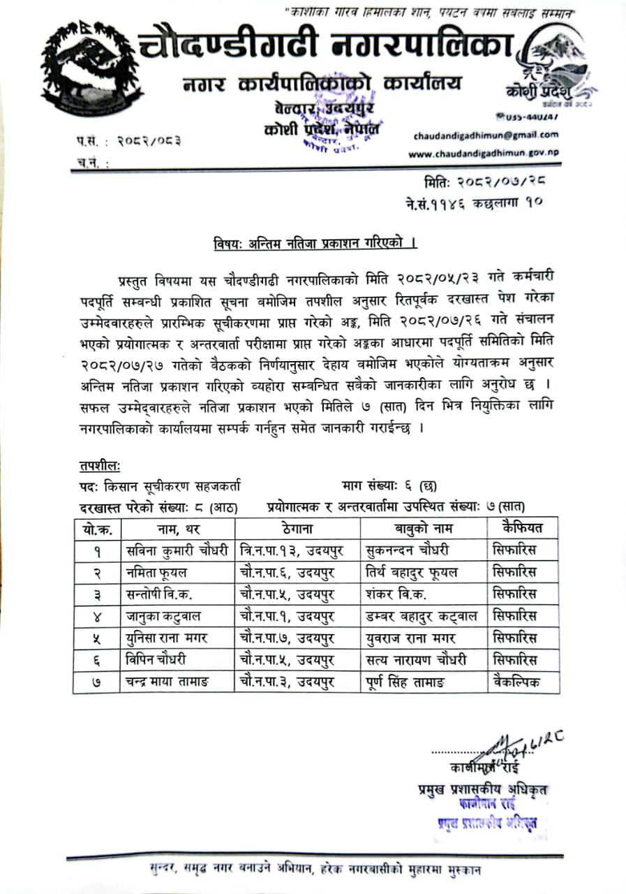अन्तिम नतीजा प्रकाशन गरिएको ।
