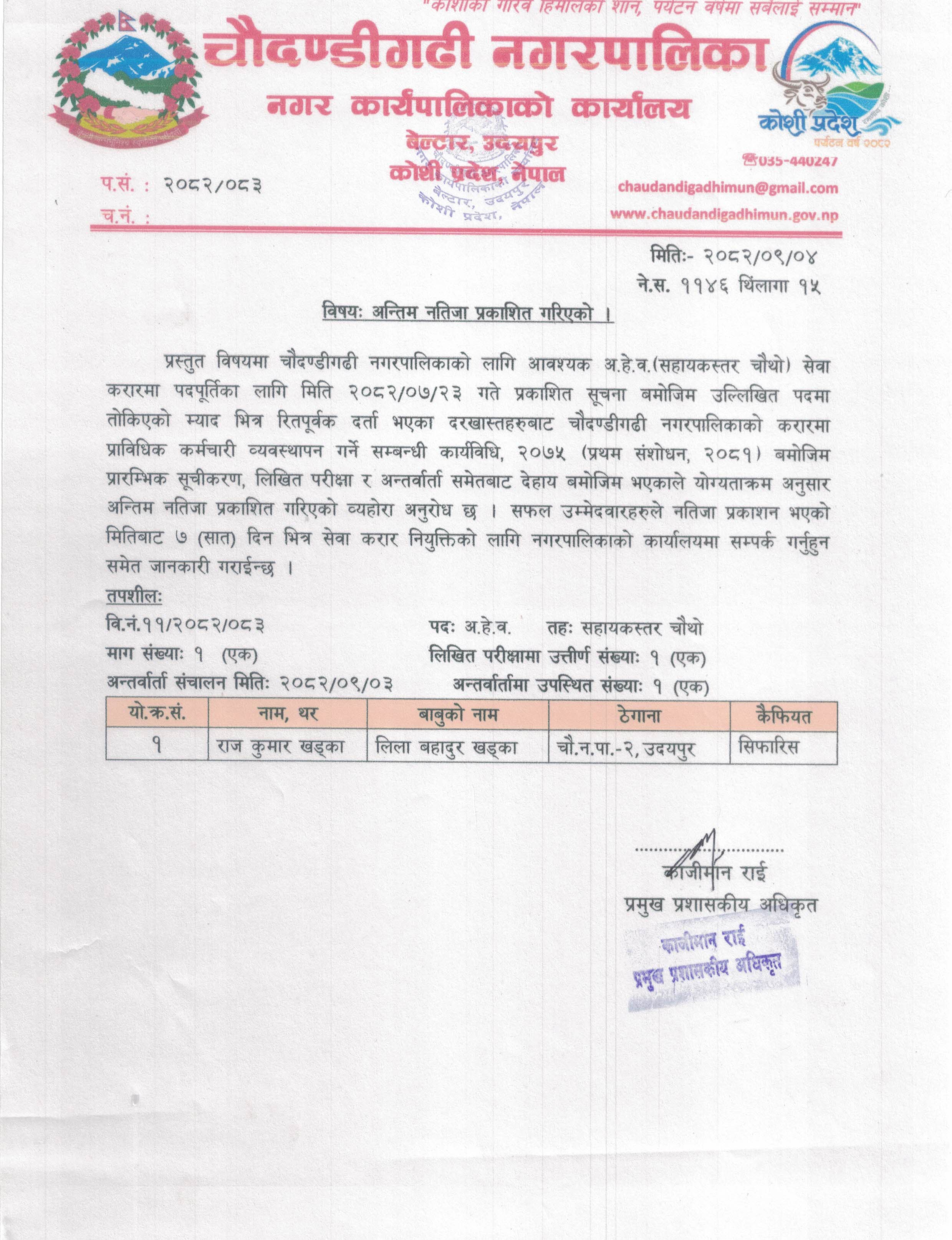 अन्तिम नतीजा प्रकाशित गरिएको ।