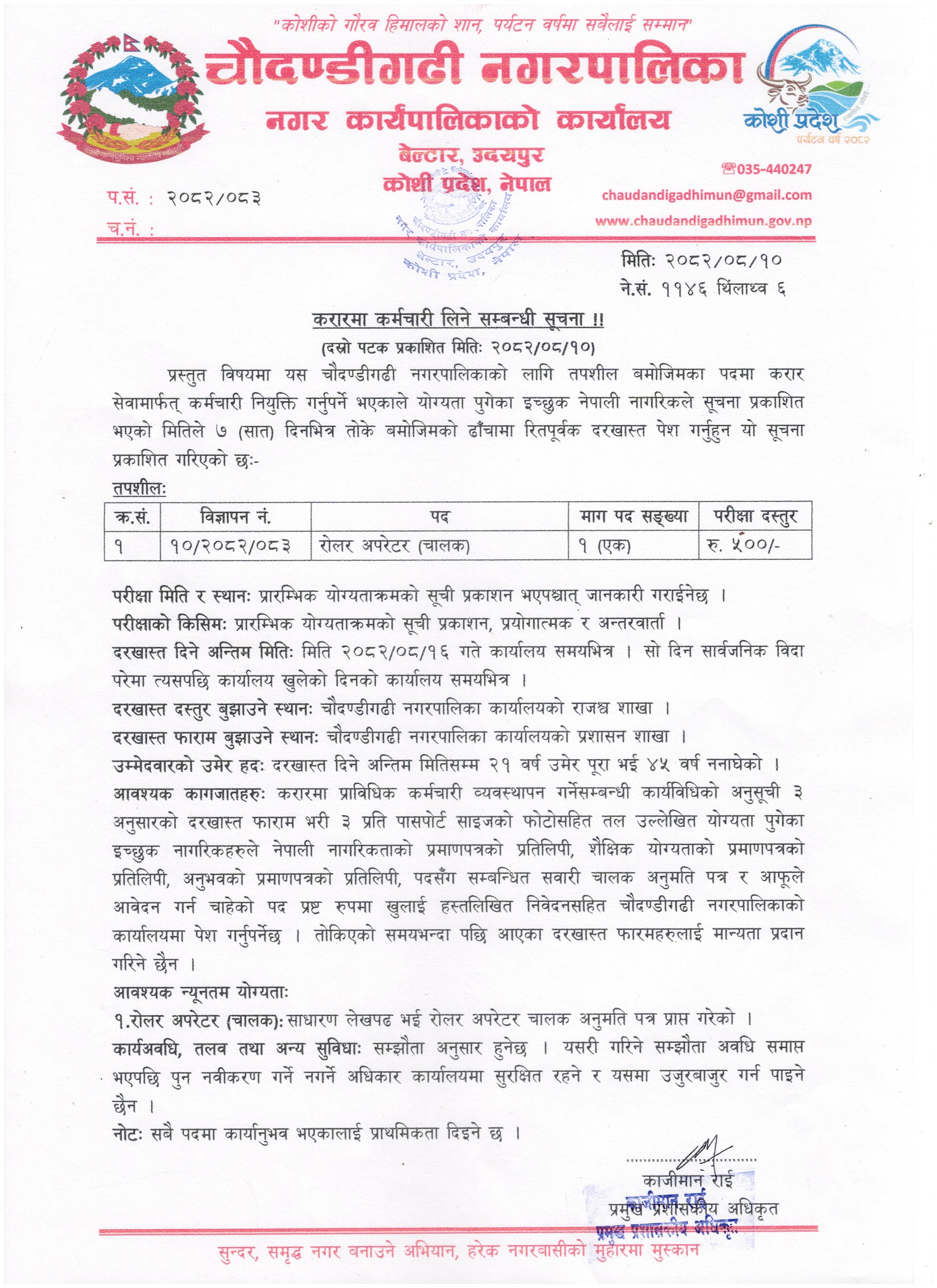 » करारमा कर्मचारी लिने सम्बन्धी सूचना (दोस्रो पटक प्रकाशित)