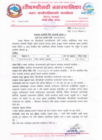 करारमा कर्मचारी लिने सम्बन्धी सूचना (दोस्रो पटक प्रकाशित)