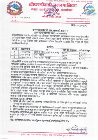 Home » करारमा कर्मचारी लिने सम्बन्धी सूचना !!