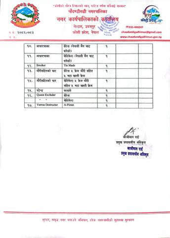 चौदण्डीगढी नगरपालिका वडा कार्यालयहरुको नागरिक वडापत्र