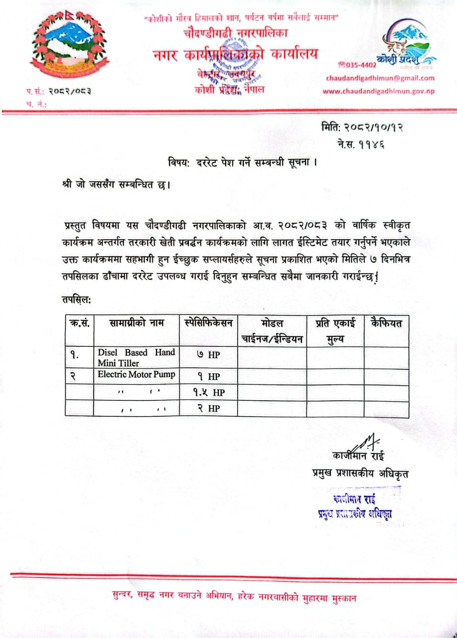 Home » दररेट पेश गर्ने सम्बन्धी सूचना ।