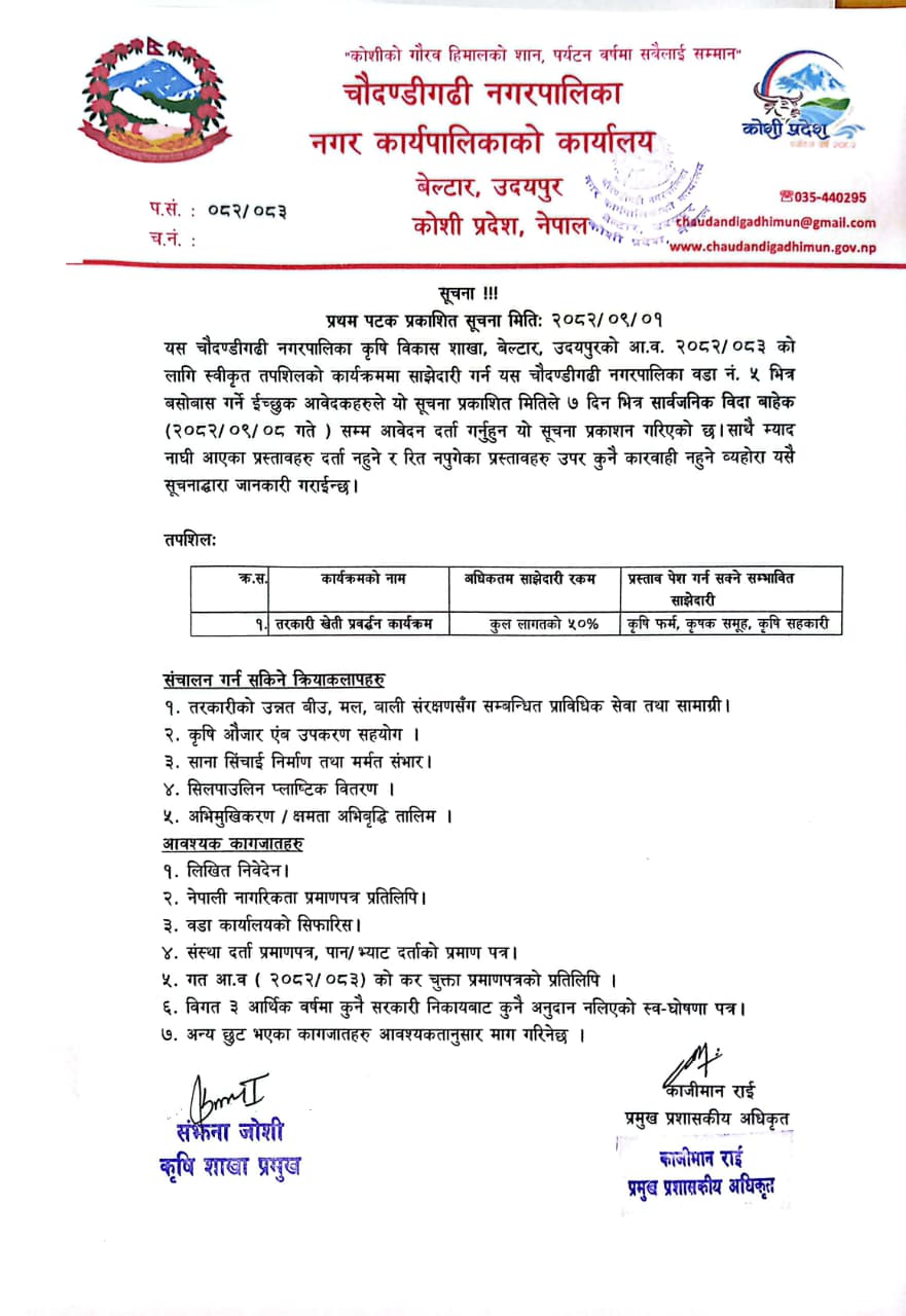 चौदण्डिगढी नगरपालिकाको नागरिक वडा पत्र २०८१/०८२