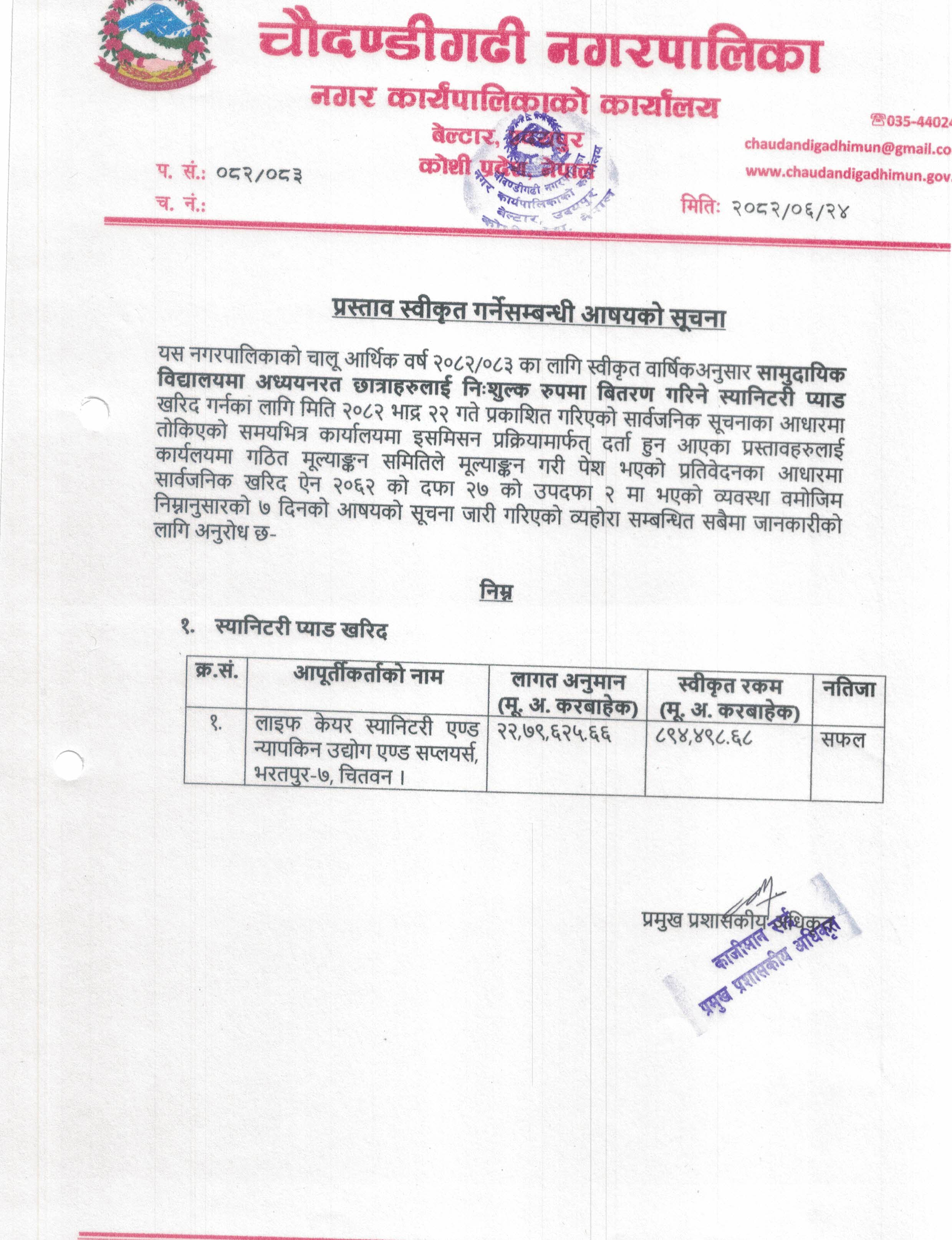 चौदण्डिगढी नगरपालिकाको नागरिक वडा पत्र २०८१/०८२