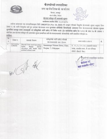 » बोलपत्र स्वीकृत गर्ने आशयको सूचना ।