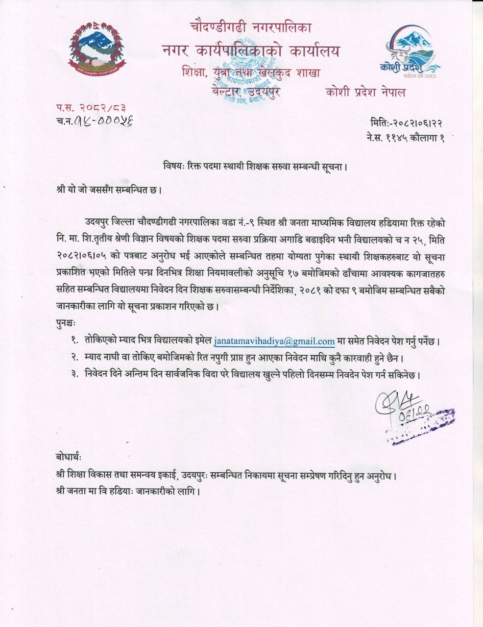 रिक्त पदमा स्थायी शिक्षक सरुवा सम्बन्धी सूचना।