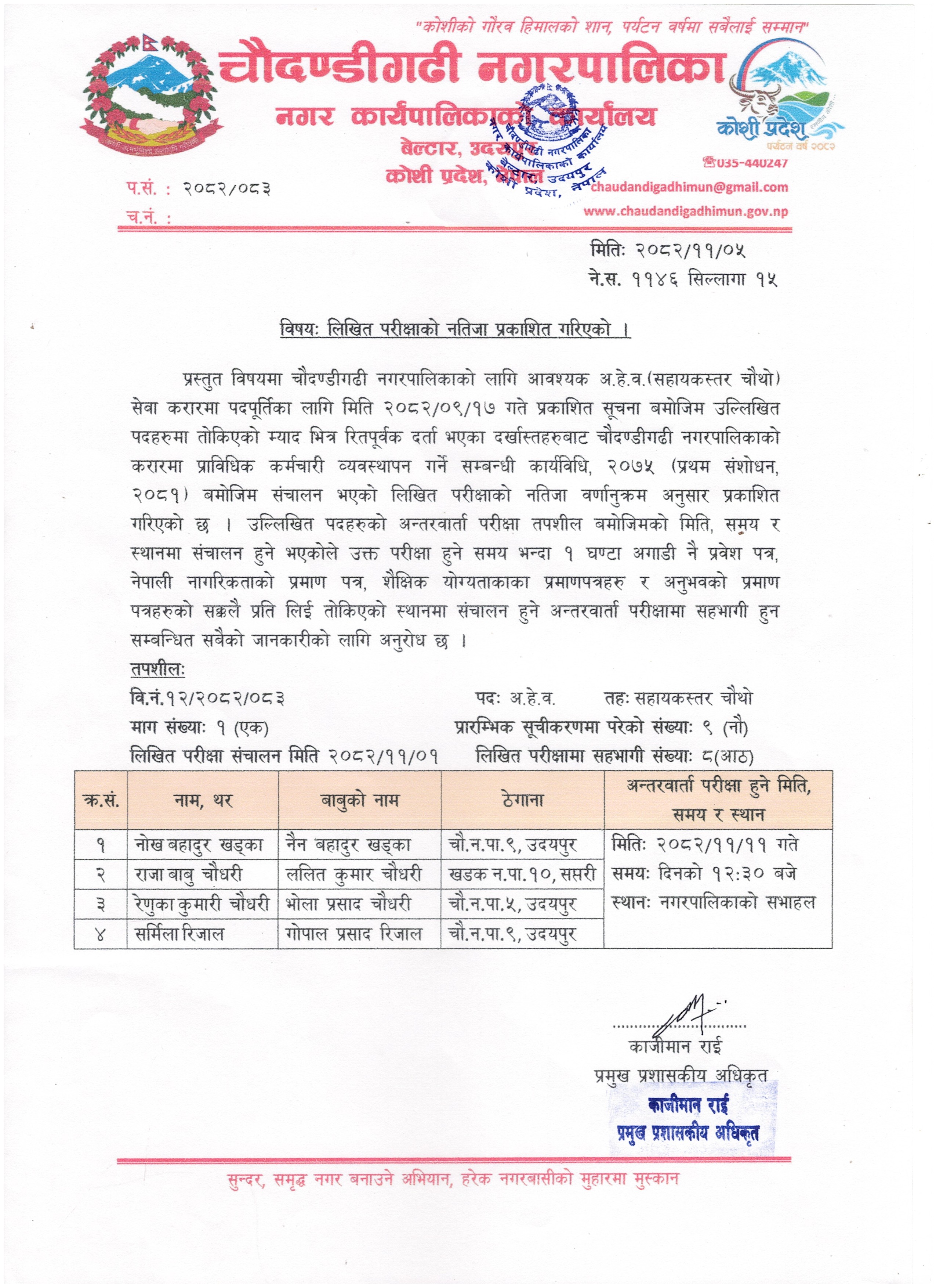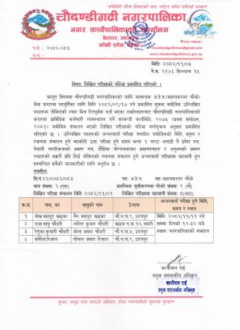 » लिखित परीक्षाको नतिजा प्रकाशित गरिएको ।
