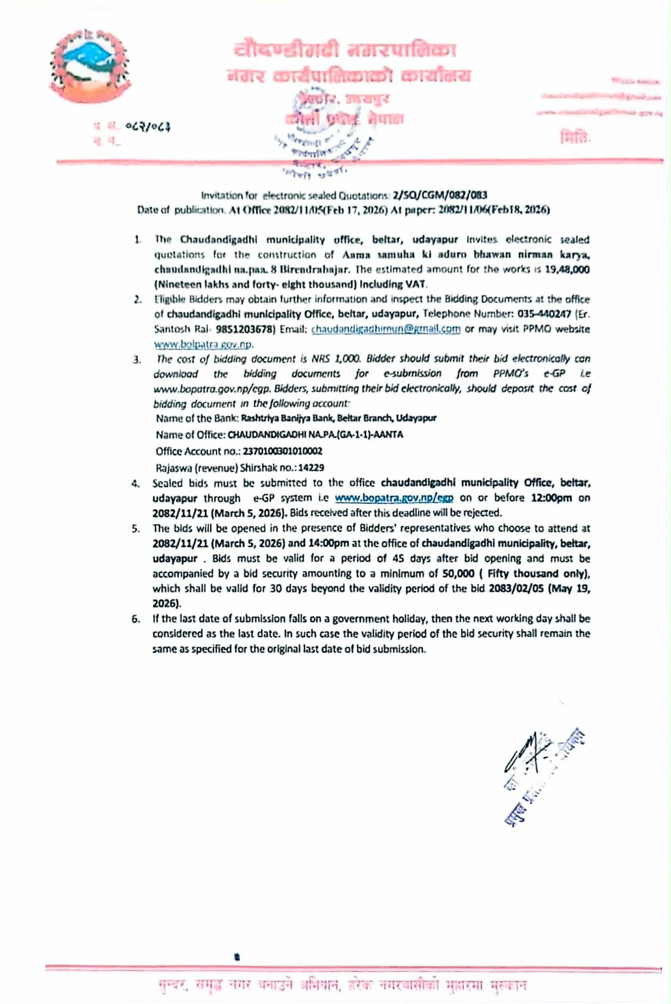 सार्वजनिक खरीद / बोलपत्र सूचना